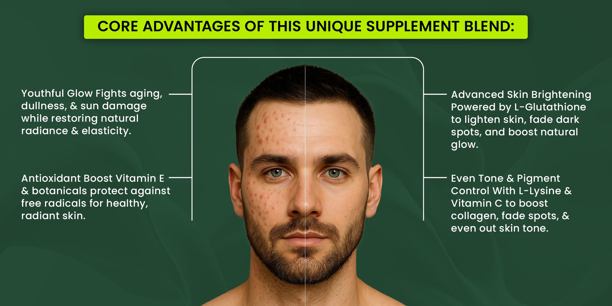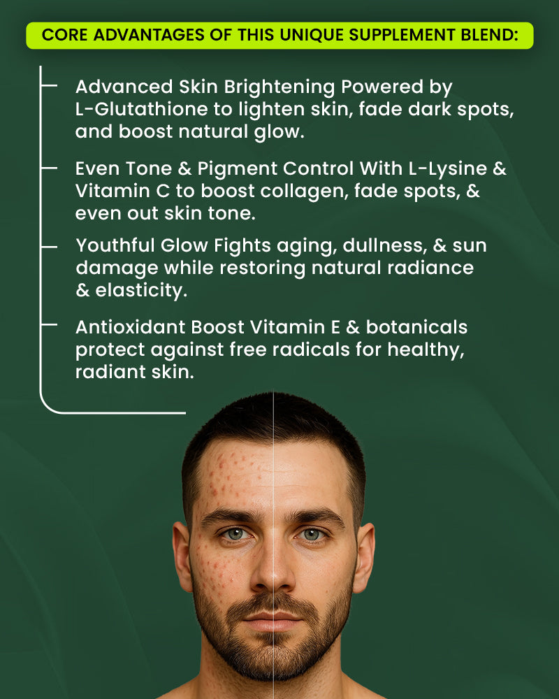 Detox & Clarify Skin: L-Glutathione supports liver detox, helping clear acne, blemishes, and dullness.